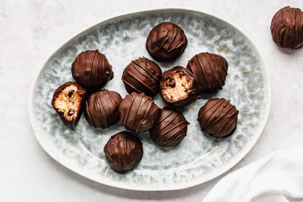 - Enjoy as cookie dough: that’s right, no need to roll and dip these babies — you can also dive right in with a spoon because the “dough” is egg free.